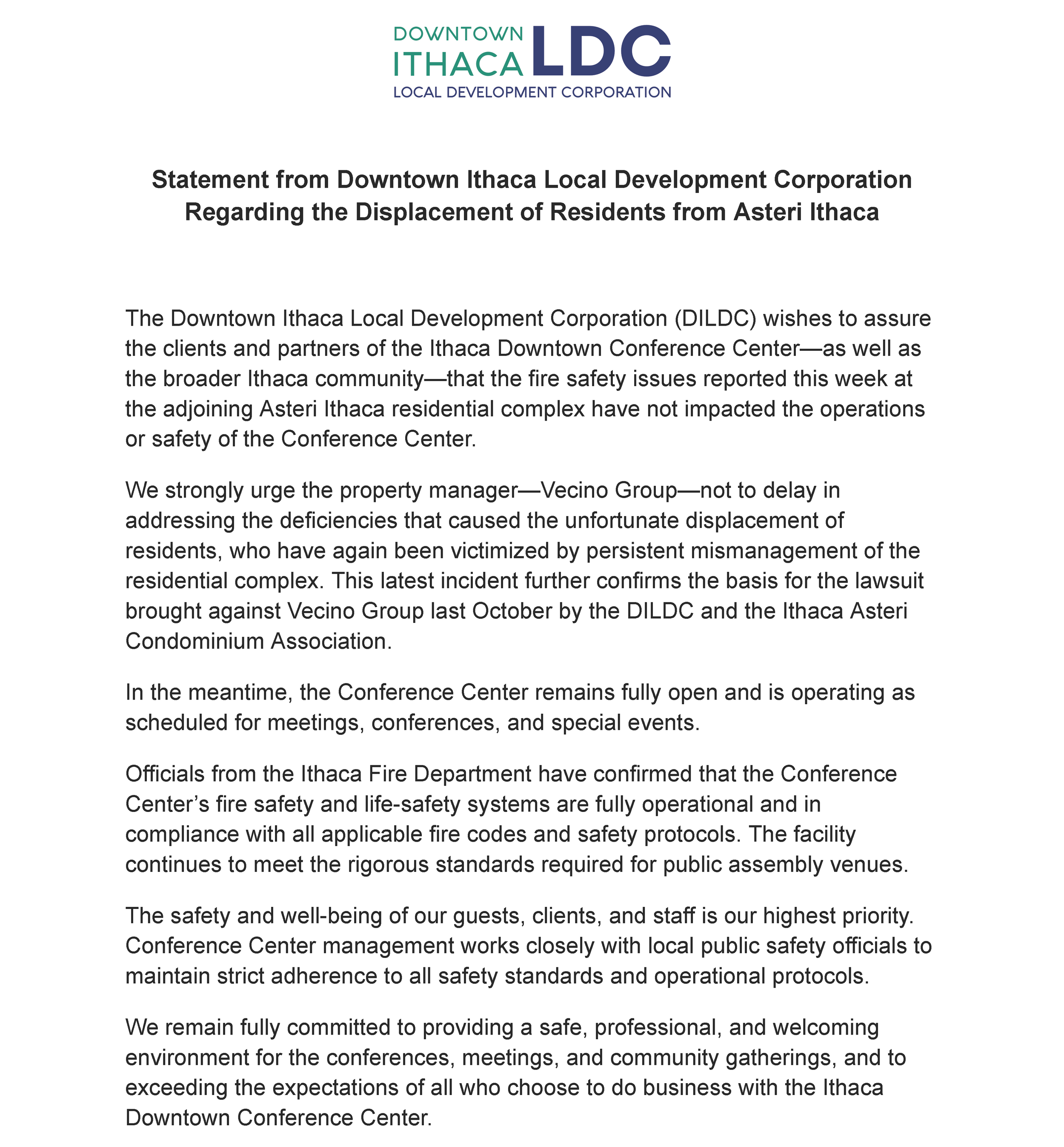 The LDC was originally formed on April 4, 2003 by the Downtown Ithaca Alliance and was formally reestablished in early 2020 for the purpose of constructing and operating the Ithaca Downtown Conference Center. The LDC was awarded NYS tax exempt status on April 16, 2021.
